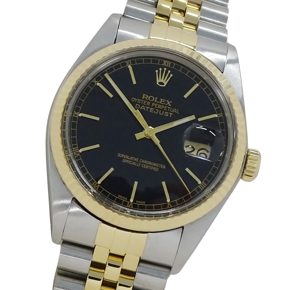 ROLEX ロレックス デイトジャスト 16013 88番台 メンズ 腕時計 自動巻き AT SS YG ブラック OH・磨き済み【中古】
